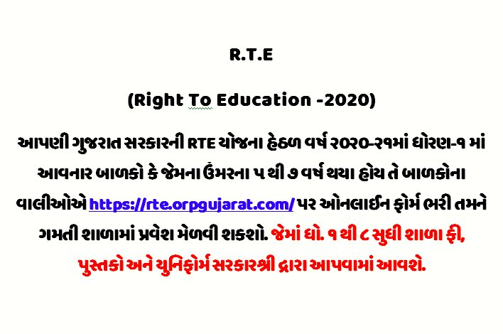 RTE Gujarat Admission 2020- www.rtegujarat.org