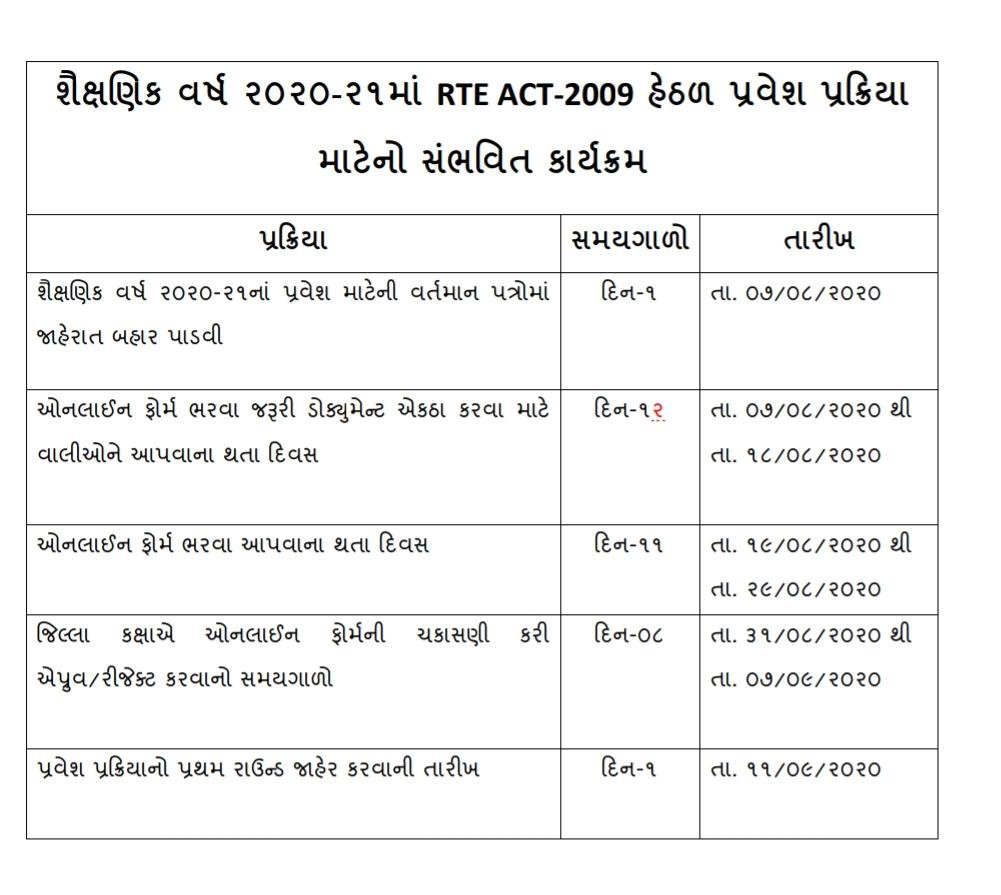 RTE GUJARAT ADMISSIONS 2020